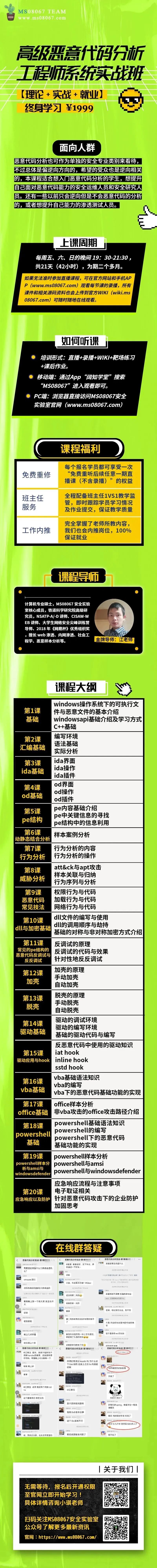 更多恶意代码分析技术可以加入系统实战班学习(2.24号开班)