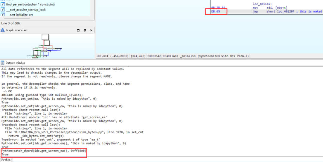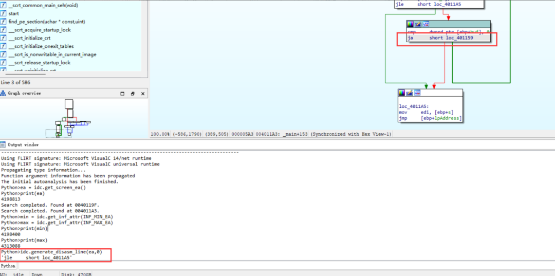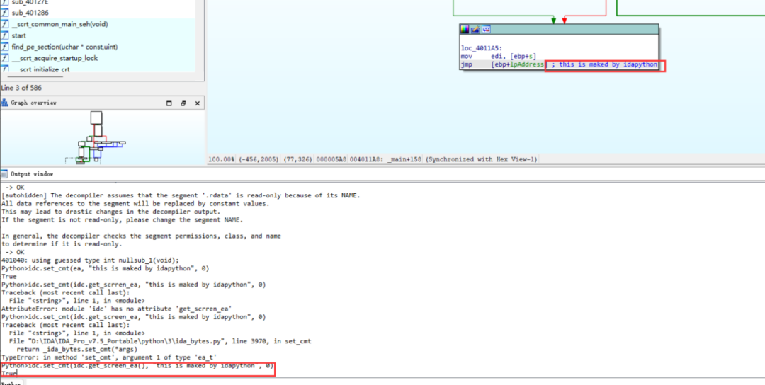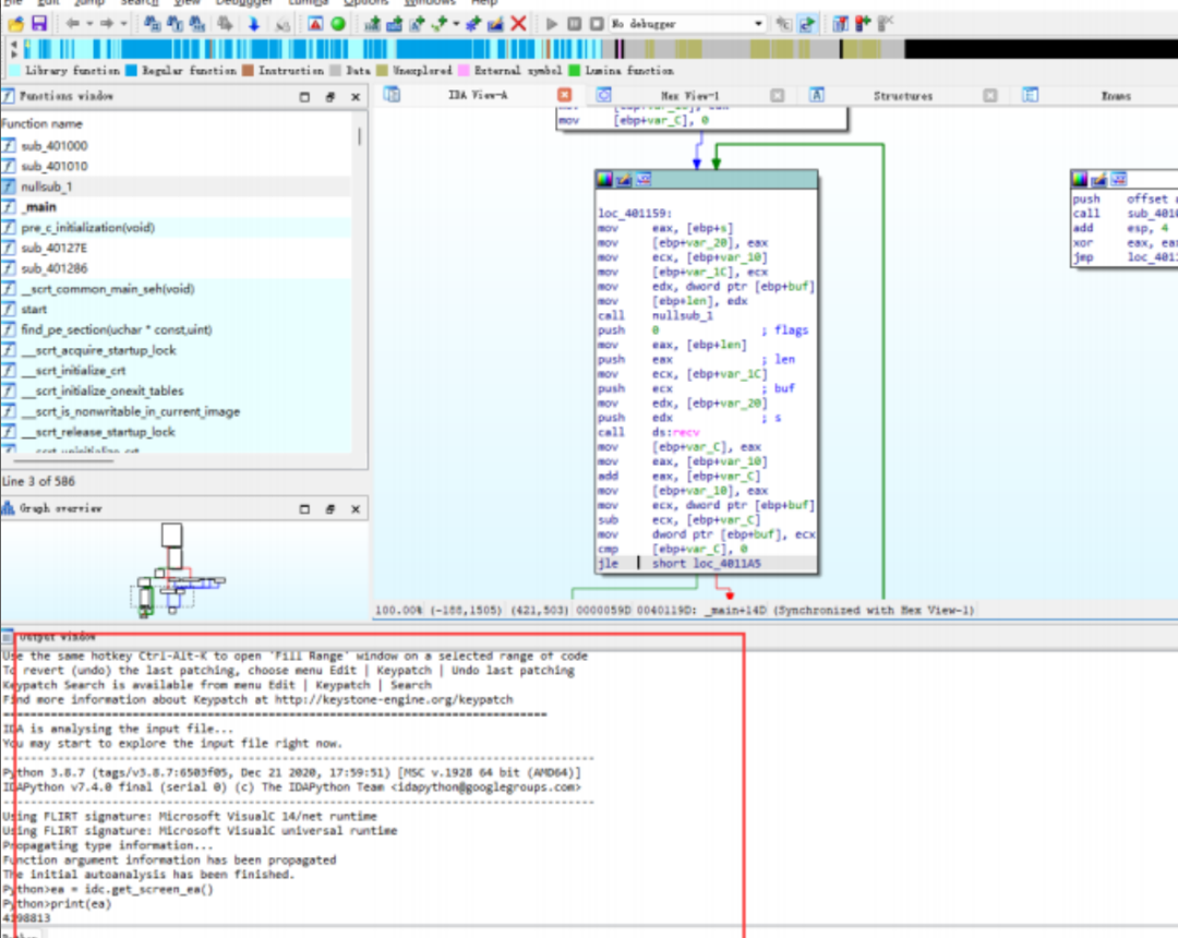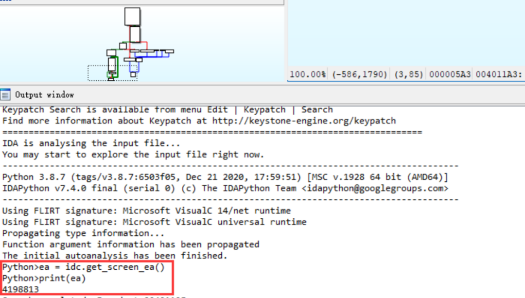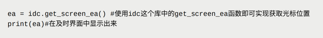 我们可以获取ida中光标所处位置(注意:不是⿏标,是光标,也就是单击在ida的反汇编界⾯中的位置),这是最基础也是最常⽤的语法。