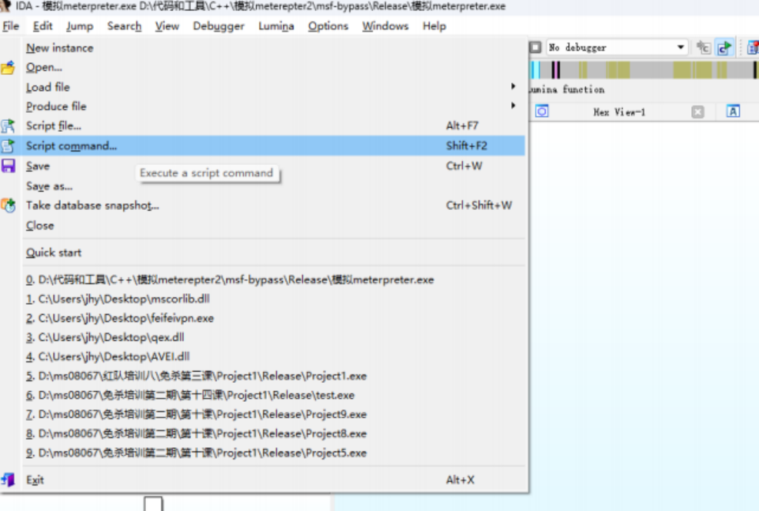 在恶意样本分析的过程中,我们会不可避免地使⽤ida这个⼯具进⾏静态分析,在分析的过程中如果我们遇⻅了需要做重复操作的步骤或者⼿⼯很难完成的步骤的话我们就需要⾃⼰来根据当前的任务需求编写⼀些ida插件来帮助我们完成。