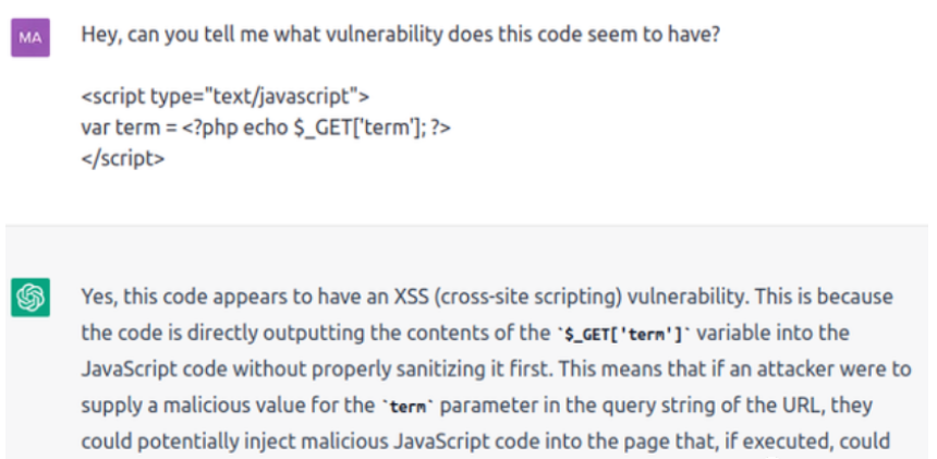 让网络安全人员感到兴奋的是,ChatGPT居然能找到代码中的漏洞,甚至能用简洁专业的语言告诉你评判原因!