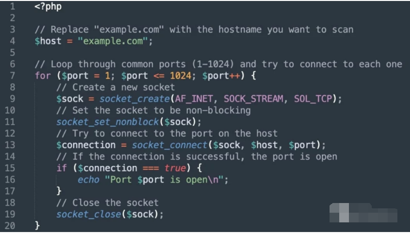 “用嘴开发软件”是很多非技术人员的终极梦想,ChatGPT把这个梦想变成了现实,BleepingComputer的编辑要求ChatGPT写一个PHP程序扫描主机名上的开放端口,结果ChatGPT输出一个看上去像端口扫描器的代码实现: