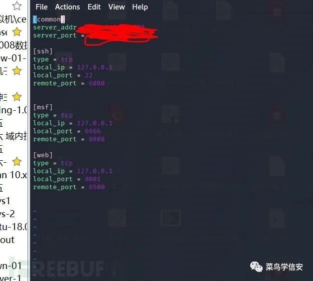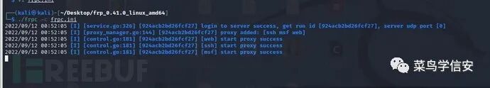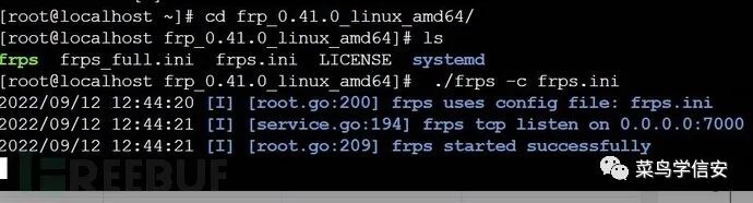 想办法上线到msf提权,这里就使用frp内网穿透,在我的vps开启frp。