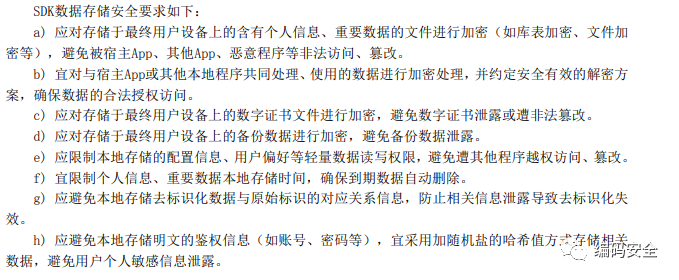 下面来源:<<移动互联网应用程序SDK安全技术要求及测试方法>> 文档中,它罗列出来sdk中的安全基本要求: