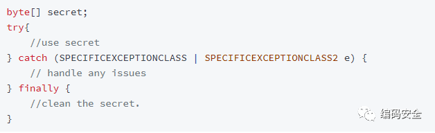 6.确保在执行 finally 块期间,始终擦除高风险应用程序处理的所有机密信息。