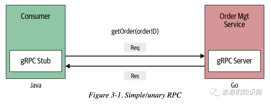 ✨ 对于上面介绍的的这种类似于http1.x的模式:客户端发送请求,服务端响应请求,一问一答的模式在 gRPC 里叫做Simple RPC (也称Unary RPC)。gRPC 同时也支持其他类型的交互方式。