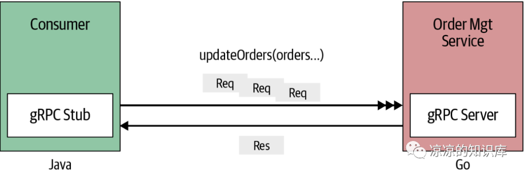 ✨ 注意与Simple RPC的区别:因为我们的客户端是流式请求的,因此请求参数stream OrderManagement_UpdateOrdersServer就是流对象