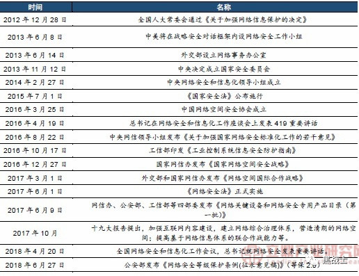 近年我国网络安全方面主要政策:
