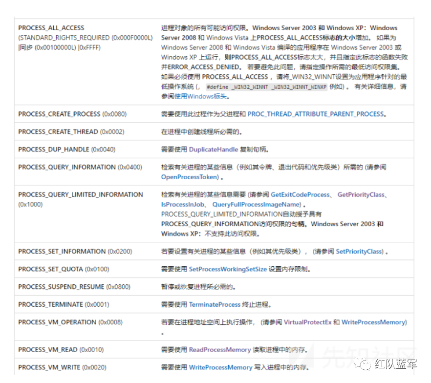 通过ACCESS_MASK值,来标识我们对正在创建的进程和线程拥有的权利和控制权。