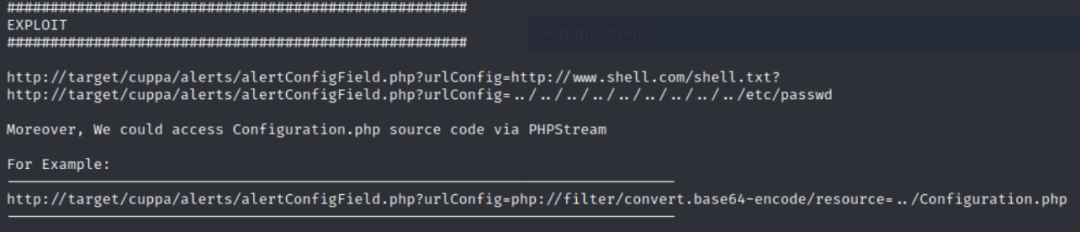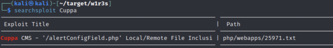 碰到安装页面不建议进一步攻击,万一真给目标重装了后果是很严重的。所以接下来的思路是找Cuppa CMS漏洞