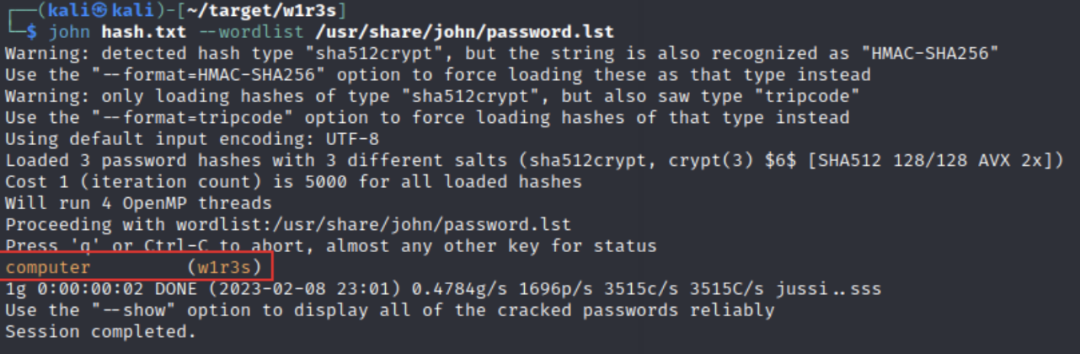 11、使用John破解shadow文件中的密文,将上面获得的密文保存为hash.txt