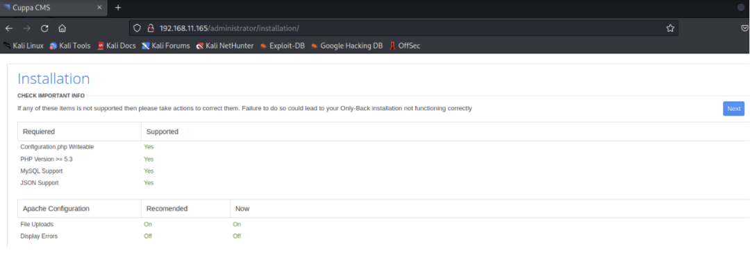 7、接着看administrator路径,发现是安装页面,同时发现使用了Cuppa CMS