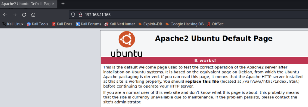 4、先从http服务入手,访问80端口,发现是一个apache的默认页面