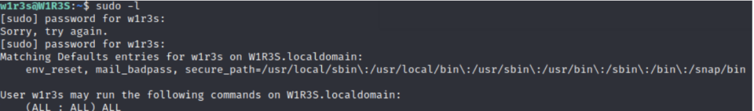 发现当前用户可以sudo任何命令,直接sudo su提权到root