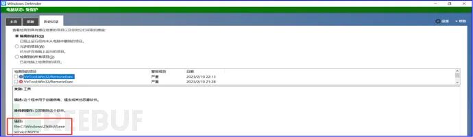 但由于psexec.py执行有很多明显的特征,已被大多数防病毒软件查杀,以下是Windows defender查杀告警。