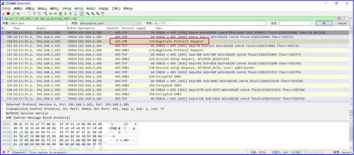 通过wireshark获取网络数据包,验证了psexec.py开始使用了SMB协议进行会话协商,通过深入分析网络数据包,观察其是否有明显特征。