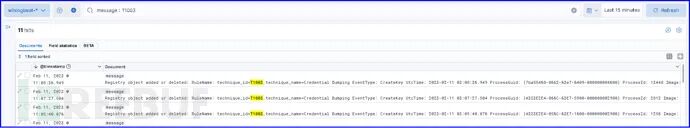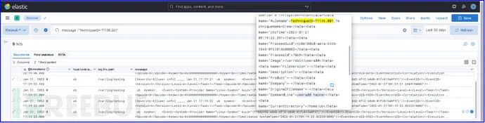 在ELK中查询创建账号时,Sysmon有生成“T1136.001:Local Account”ATT&CK标签的日志。