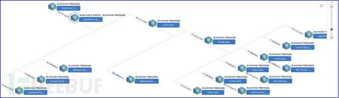 对于初步识别出的可疑进程,可依托Elastic ELK进程关联分析功能,让蓝队很容易理解攻击行为,并高效地开展攻击溯源或威胁狩猎。