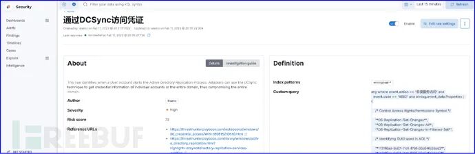 在红队进行第二种技术攻击时,即使用secretsdump.py导出域控AD目录所有账号和哈希时,Sysmon并没有产生有关日志,而Windows安全日志里则产生了大量4622事件(A security package has been loaded by the Local Security Authority)。蓝队可以通过ELK预置规则或修改预置规则进行关联告警。需要提醒的是每一条安全检测规则均应经过实际测试验证有效。