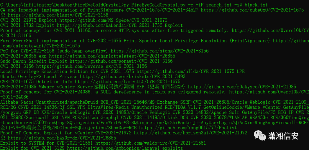 py FireEyeGoldCrystal.py -m根据指定关键词文件收集存储库,并过滤指定敏感词: