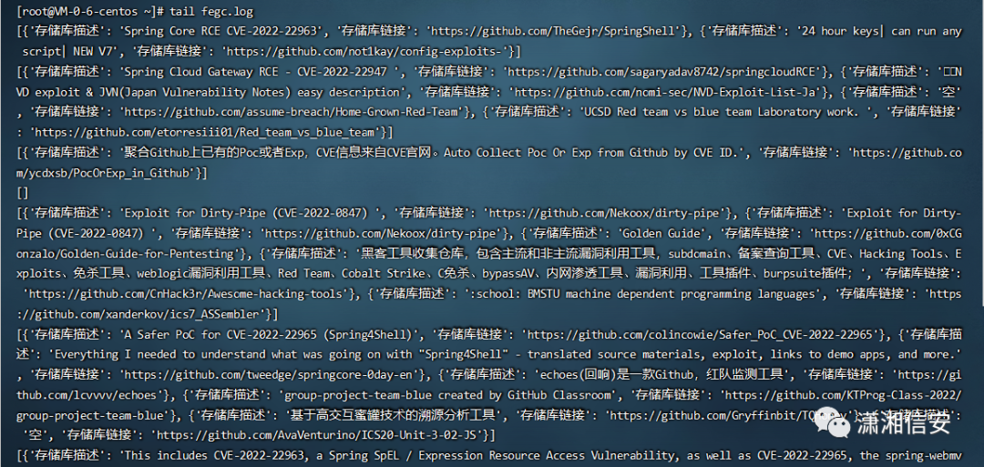 py FireEyeGoldCrystal.py -m -iF search.txt -sW black.txt根据内置关键词监控存储库,监控阈值为4小时,并输出日志文件: