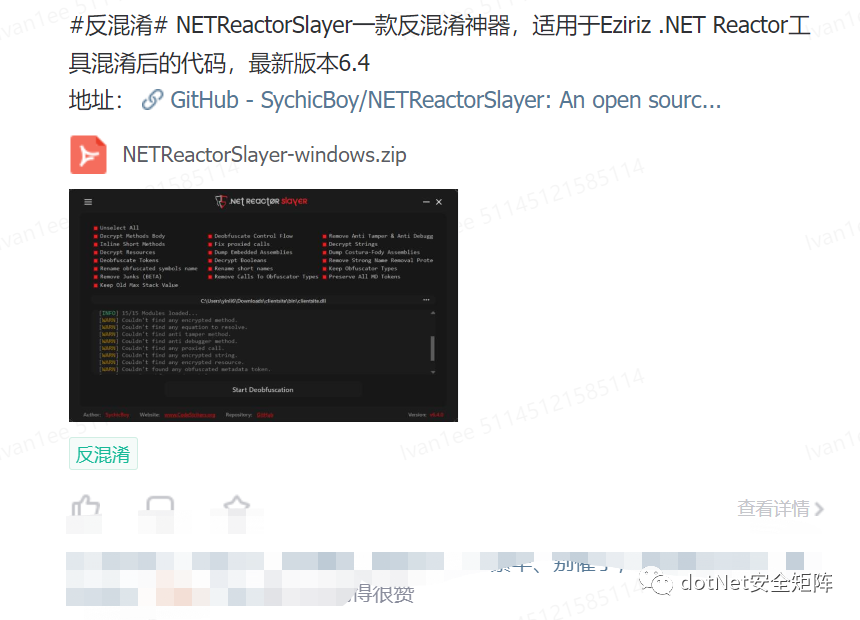 1. NETReactorSlayer一款反混淆神器