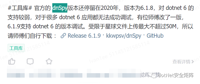 星球汇聚了各行业安全攻防技术大咖,并且每日分享.NET安全技术干货以及交流解答各类技术等问题,社区中发布很多高质量的.NET安全资源,可以说市面上很少见,都是干货。其中主题包括.NET Tricks、漏洞分析、内存马、代码审计、预编译、反序列化、webshell免杀、命令执行、C#工具库等等,后续还会倾力打造专刊、视频等配套学习资源,循序渐进的方式引导加深安全攻防技术提高以及岗位内推等等服务。