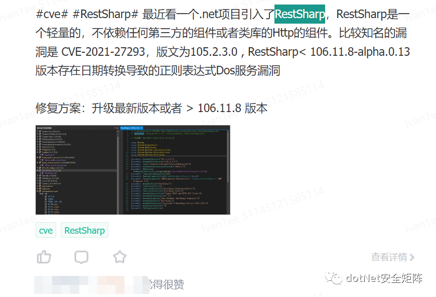 dotNet安全矩阵知识星球 — 聚焦于微软.NET安全技术,关注基于.NET衍生出的各种红蓝攻防对抗技术、分享内容不限于 .NET代码审计、 最新的.NET漏洞分析、反序列化漏洞研究、有趣的.NET安全Trick、.NET开源软件分享、. NET生态等热点话题、还可以获得阿里、蚂蚁、字节等大厂内推的机会.