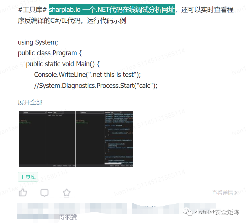 3. sharplab.io 一个.NET代码在线调试分析网址