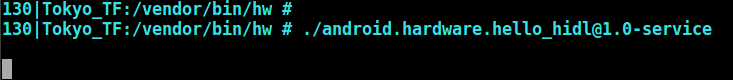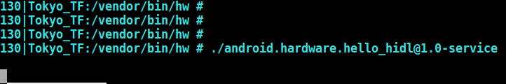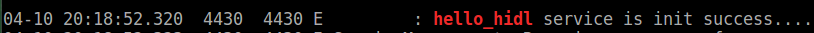 HIDL这个服务已经能够正常启动了,接着写一个测试程序看能否获取这个服务,并且调用该服务的函数,我在Hello.cpp的addition_hidl函数中添加了一句log: