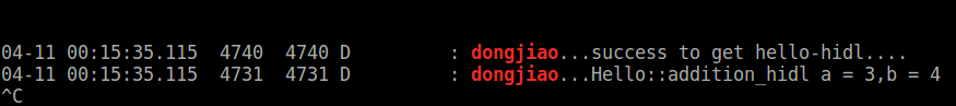 ALOGD("dongjiao...Hello::addition_hidl a = %d,b = %d",a,b);