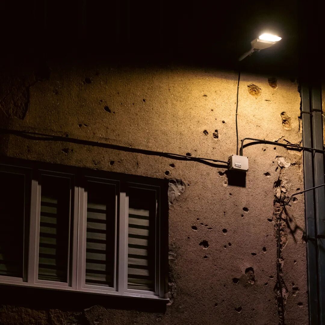 时至今日依旧可见墙上的弹孔