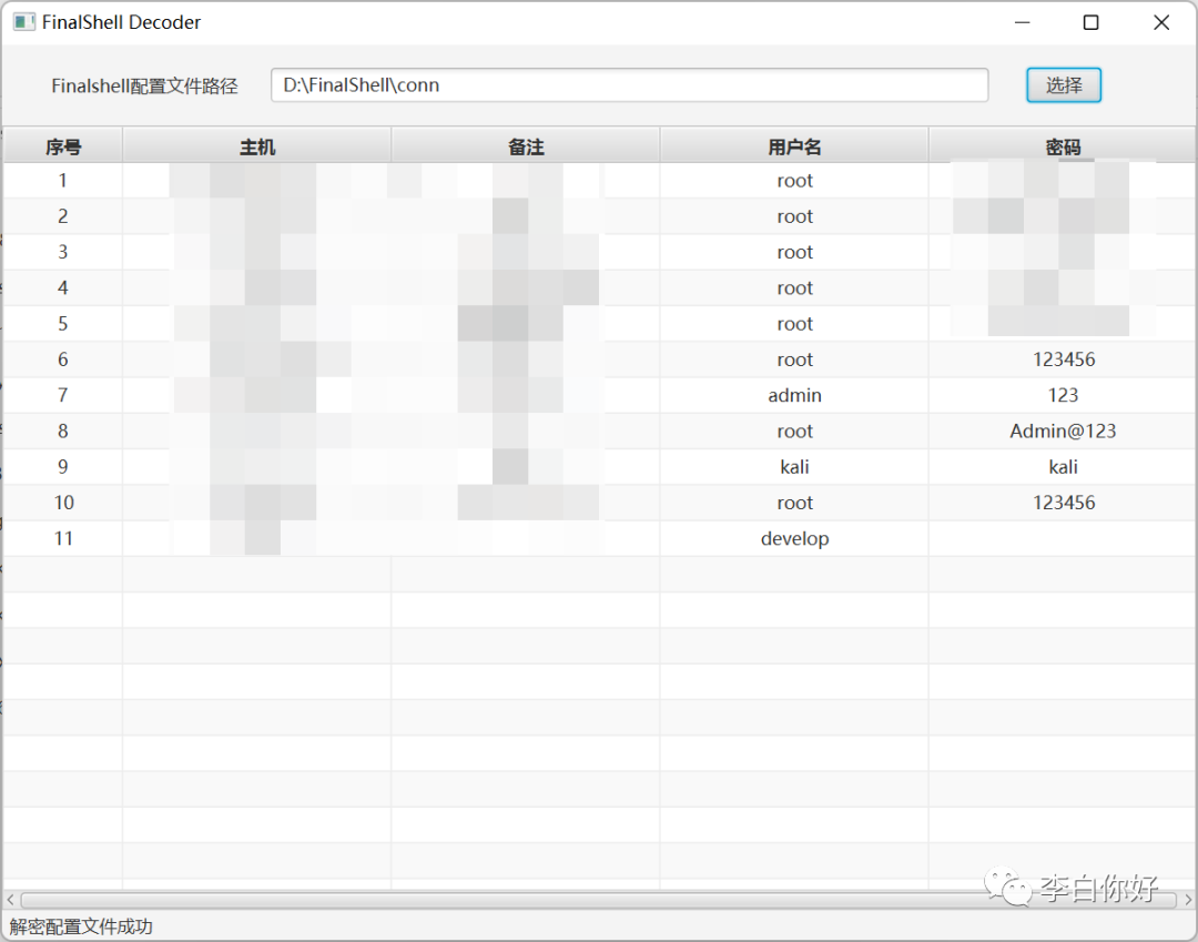 也可将远程主机文件下载到本地解密,输入合法路径后自动生成所有主机配置信息: