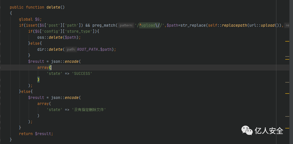 我们继续查看ueditor.class.php文件时发现该文件下还存在一个delete()方法,这个是编辑
