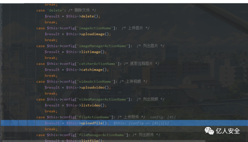 uploadimage ,分支的选择是通过读取config[]来进行选择的,config的内容是从哪里获取的![]()