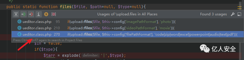 我们全局查看files()方法调用,发现该处功能点传入的类型中有code,我们跟进该方法进行查看。