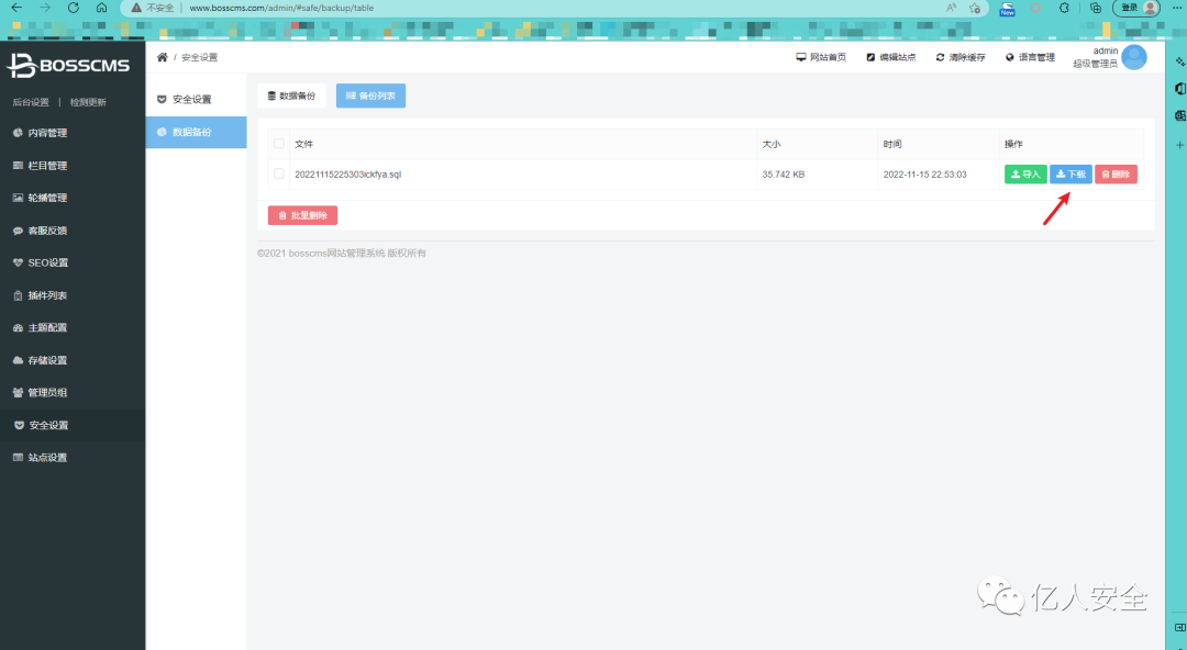 在测试功能点的时候我们发现 安全设置- 数据备份- 备份列表- 下载处存在一处任意文件下载,我们抓包去分析该处下载功能点。![]()