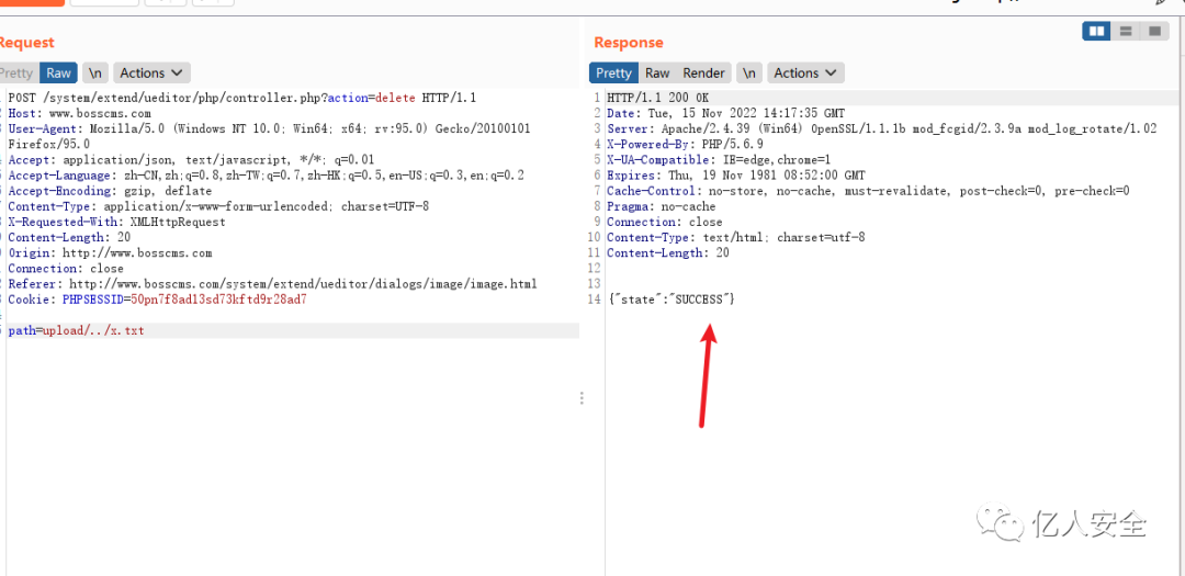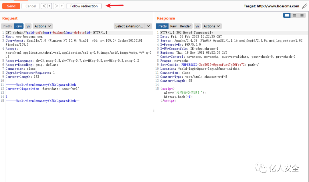 最后通过编辑器的文件上传功能进行文件上传,从下图可以看到文件上传已经成功然后进行302跳转。