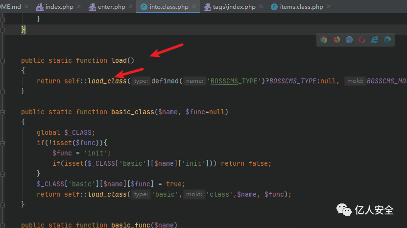 在该文件中定义了一些常量,包含了into.class.php文件并调用了 into 类下的 load() 方