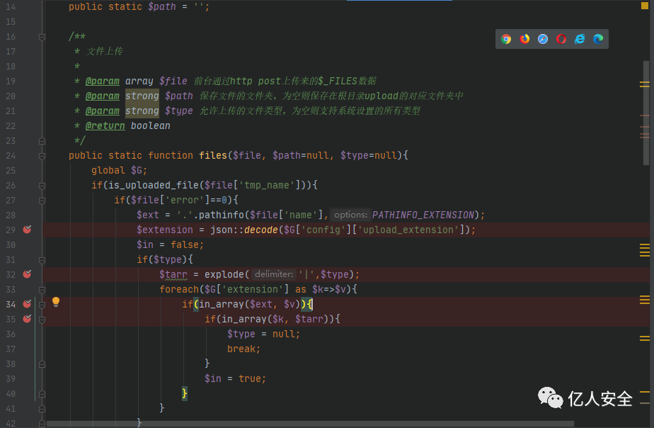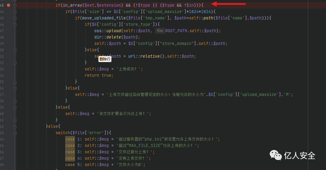 我们首先去看第一个条件 $ext 在 $extension 数组中,我们继续向上追溯