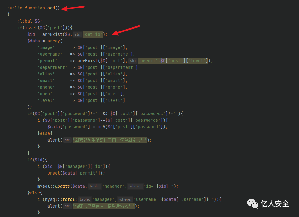 mold=manager&part=manager&func=add /system/admin/manager/manager.class.php中的add函数