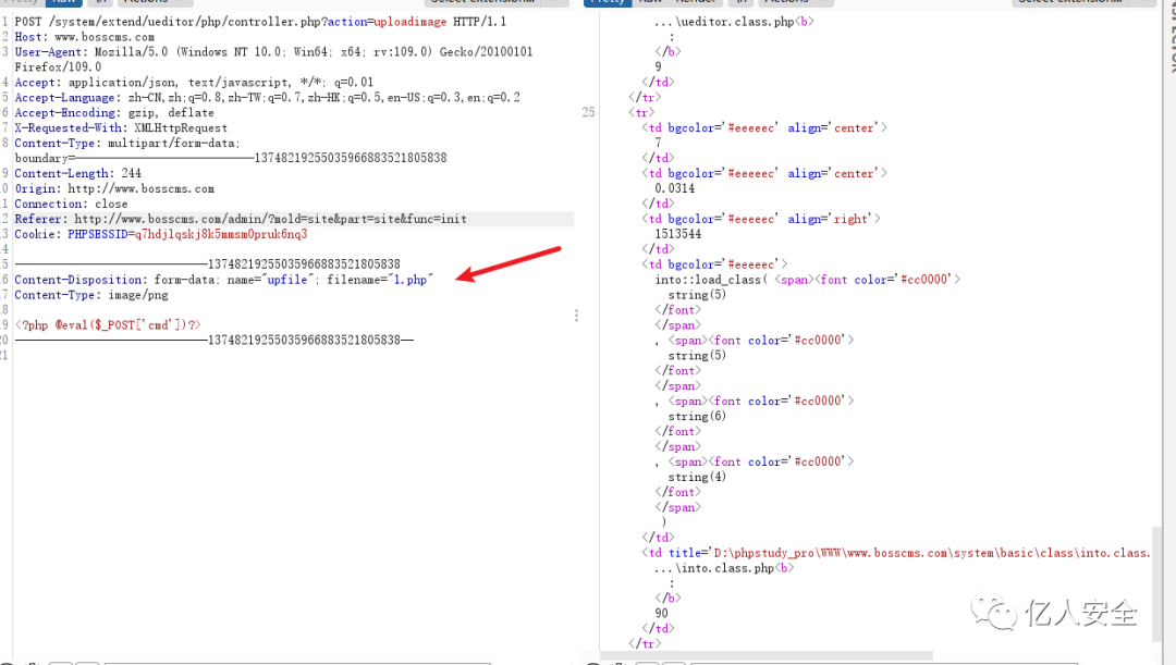 code下包含我们想要上传的.php后缀。所以此处功能点满足上面的两个条件可以实现任意文件上传。