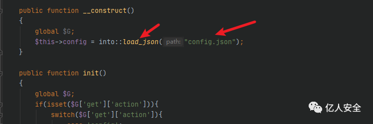 在类的最上面通过 __construct() 调用 load_json() 方法进行 config 内容的获取,