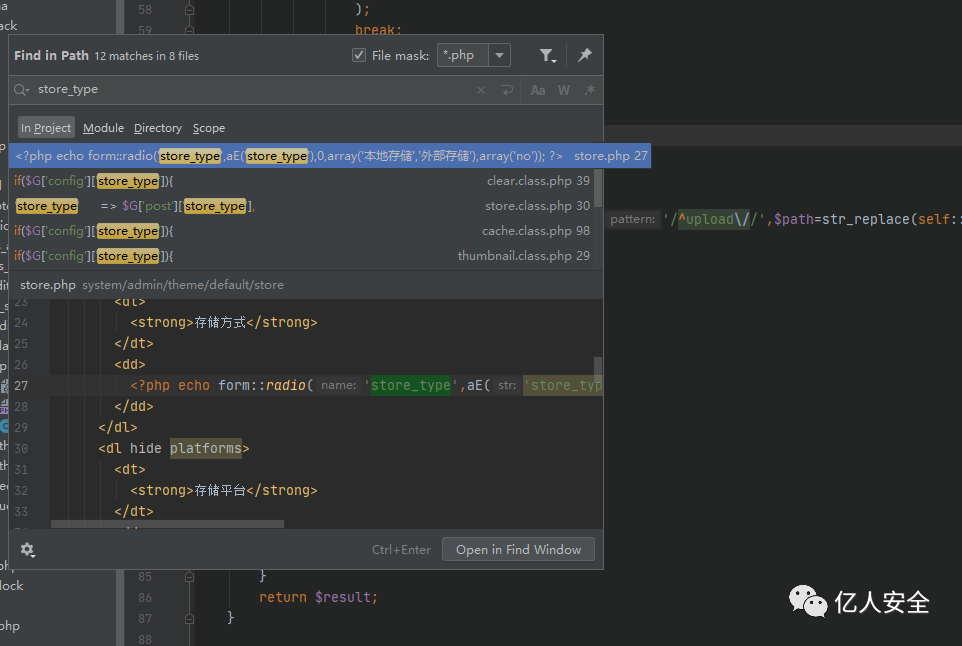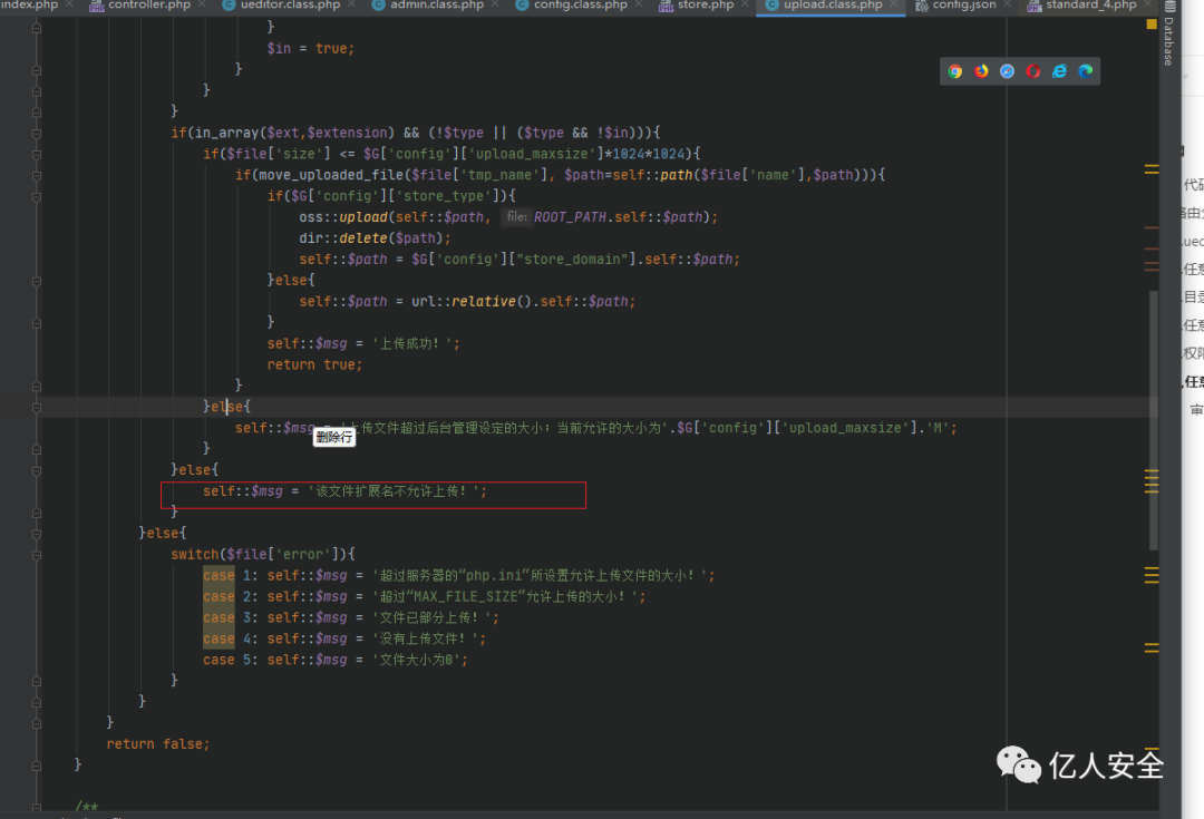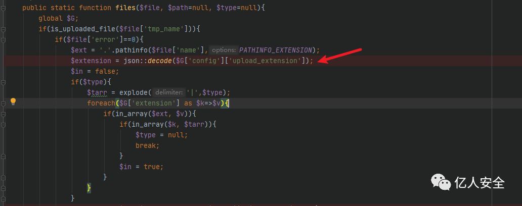 全局搜索 upload_extension 可以发现该处正是我们上面通过自定义设置的.php后缀,所以