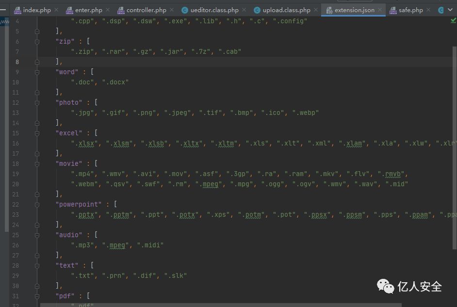 我们全局搜索extension中定义的类型,发现extension.json文件中定义了我们上传的类型
