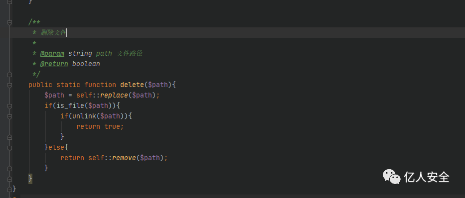 通过全局搜索store_type发现该处功能为设置存储方式,默认为0,所以上面默认会走dir类下的delete()方法。![]()