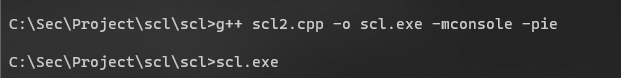 g++ scl2.cpp -o scl.exe -mconsole -pie-pie参数编译后运行没有反应,跳过。
