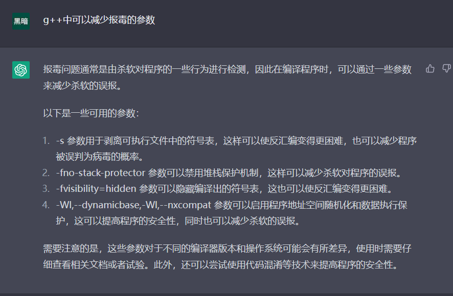 -Wl,--dynamicbase,-Wl,--nxcompat 参数可以启用程序地址空间随机化和数据执行保护,这可以提高程序的安全性,同时也可以减少杀软的误报。