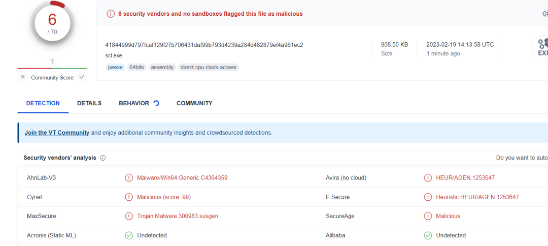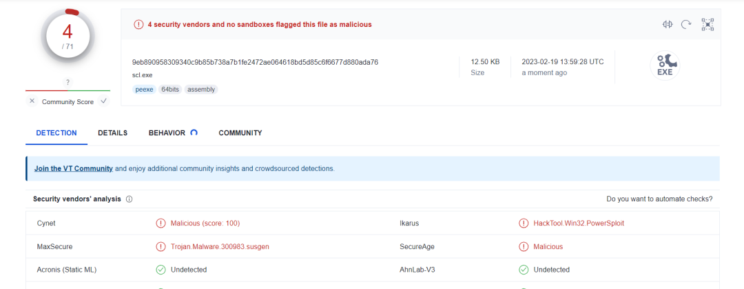 上传VT,结果出来实现VT全免杀!至此实验结束。