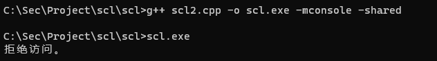 g++ scl2.cpp -o scl.exe -mconsole -shared-shared参数编译后运行无法运行,跳过。