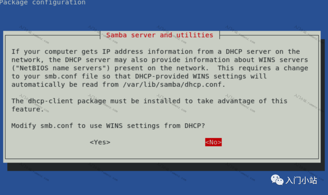 如果你使用的是静态 IP 地址,当被要求使用来自 DHCP的WINS设置时,选否。